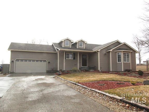 Single level house on large .66 acre lot in nice dead-end cul-de-sac. Spectacular kitchen/dining area with new microwave and all appliances included. Two storage sheds and room to build your "dream shop" and open farm land directly behind home! All carpet is being removed by March 24, 2022 new ACACIA Engineered Hardwood floors will be installed. A sample of this hardwood is visible in one of the bedrooms. New roof in 2016 and new microwave. Walking distance to Purple Sage Golf Course and only 10 minutes to I-84.
