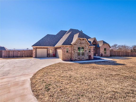 HOME/SHOP COMBO! Beautiful open floor plan with custom wood burning fireplace. 3 bedroom, 2 bath, plus study (4th bedroom). Kitchen features huge eat-at island. Granite counters. Stainless appliances. Amazing walk in pantry with sliding barn doors. Oversized walk in master closet is loaded with built-ins and connects to utility room. 3 car garage with bonus storage area and wash sink. PLUS- 30*40 Workshop with concrete floors and electric. Above ground pool. Huge 1.5 acre lot back up to farmland. Quiet Westwood Farms neighborhood is easy commute to Norman or OKC. $2000 CARPET ALLOWANCE WITH ACCEPTED OFFER!