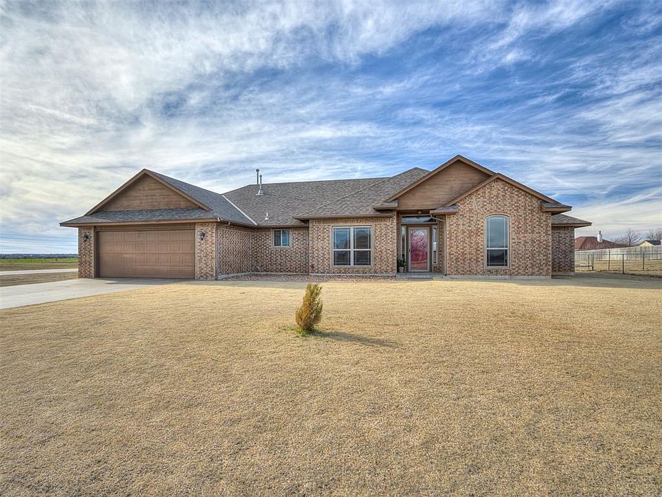 Beautiful custom home situated on a peaceful, half-acre corner lot in Circle V Estates residing within the highly sought after Piedmont school district. This house features 3 bedrooms, 2 bathrooms and a dedicated study with an open-concept layout. The kitchen is equipped with gorgeous solid wood cabinets, granite countertops, stone backsplash and overlooks the living area. The living area boasts a cozy gas log fireplace, perfect for gatherings. A large primary suite presents a luxurious feel with its walk-in shower, double separate vanities, jetted tub, and two spacious walk-in closets. One of the closets provides a pass through to the oversized dream laundry room. The 3-car garage with a pass through to the rear of the home offers ample space. Fantastic opportunity to own a well-maintained home in a peaceful neighborhood. Enjoy country living with the conveniences of OKC nearby! Don't miss out on this gem! *Brand new roof*