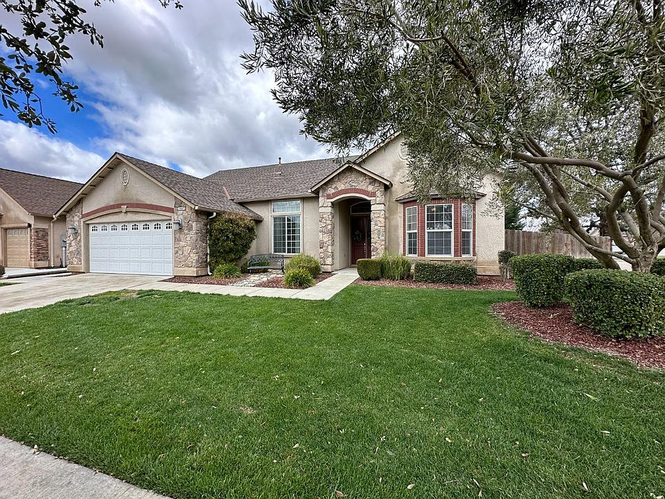 This gorgeous one story home has been meticulously maintained and is an entertainers dream, sitting on a highly desired corner lot! As you enter, warm natural light fills the great room, and the gas fireplace makes for a cozy place to hang out! You'll love to cook something up in the upgraded kitchen, with sprawling granite counters and quality appliances. The office/den space is a perfect place to set up your home office or cozy up to read a good book! The spacious bedrooms are nicely situated down the hall, leading to a beautiful primary bedroom and luxurious bathroom, huge walk in closet and amazing vanity areas! It will be warm and sunny before you know it, and I am convinced that you will fill your days lounging by the pool in your very own paradise! The mature trees are a perfect backdrop for the rock waterfall cascading into the pool and the large pergola creates a wonderful covered space to relax, bbq and watch your favorite sport on tv! This home offers it all, and is turnkey! The pride of ownership shines bright throughout this home! Don't miss out, it won't last long!
