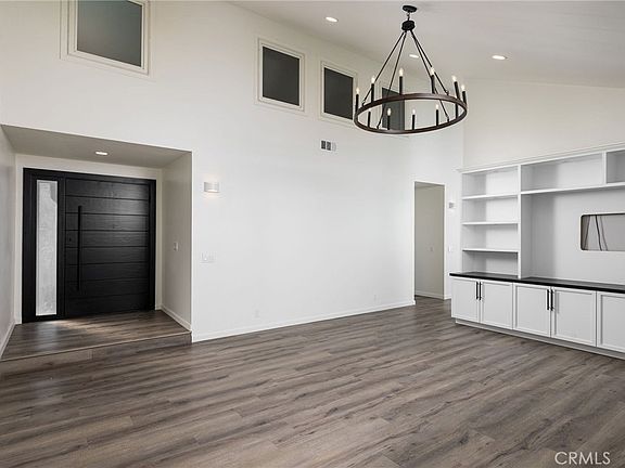 Fully remodeled single-level home on a private corner lot in one of Laguna Hills' most convenient locations! Everything is pristine, move-in ready and waiting for you. This ideal single-family residence offers fantastic natural light and outdoor living with local amenities just a half mile away. A long driveway leads to the two-car garage with new epoxy floors, an EV charger, brand new washer and dryer, new garage door, and new water heater. Inside, the living room opens to airy vaulted ceilings, upgraded wood-grain floors and a wall of built-ins. The kitchen and family room share an open concept layout, with large picture window and a cozy fireplace. The new, all-white kitchen includes a large center island, granite counters and upgraded stainless appliances. Fresh interior paint, new lighting fixtures, and upgraded windows and sliders are featured throughout. Three spacious bedrooms include your primary suite with sliding doors to the yard, large mirrored closets, and a beautifully remodeled en-suite primary bath. A second full bath in the hall serves the other two bedrooms, all finished with a clean, consistent and contemporary look. The wrap-around yard gives you sunny space to enjoy the low maintenance pet-friendly turf, a built-in BBQ station with bar and fridge, a fire pit area for gathering, and an optional play structure. Costeau Park and playground are less than half a mile away, along with Laguna Hills Plaza shops and restaurants right up the road. Highly rated Saddleback Valley schools, additional shopping centers, and easy freeway access are all nearby. This home is totally upgraded, turnkey, and ready for you to settle in!