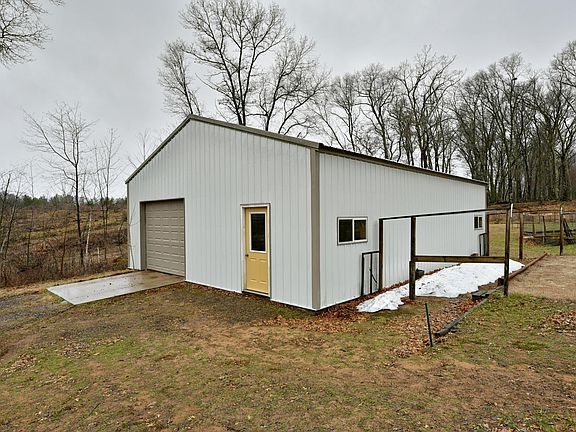Welcome to your "homestead" dream! The 3 bd/3ba home, garage/with workshop, pole barn & outbuildings on the surrounding 9.7 acres are uniquely designed to create self-sufficiency. You'll love cooking in the fully equipped kitchen, with the kitchen's baker island and multiple pantry closets (perfect for storing all your goodies). The unique features of this property are truly exceptional; two luxurious spacious master suites with walk-in closets (one suite has a cozy sitting area), main floor laundry, classic shear weave solar blinds, and trendy charming front entrance portico with covered decking. The lower-level family room with a pellet stove is perfect for those chilly evenings. Entertain in the spacious family room and kitchenette wet bar. The workshop bonus room adds extra charm to the property. The main outbuildings are 48 x 24 two-car garage with heated workshop and 40 x 30 pole barn. The land boasts several berry types, fruit trees, rhubarb, asparagus, and potato sections.