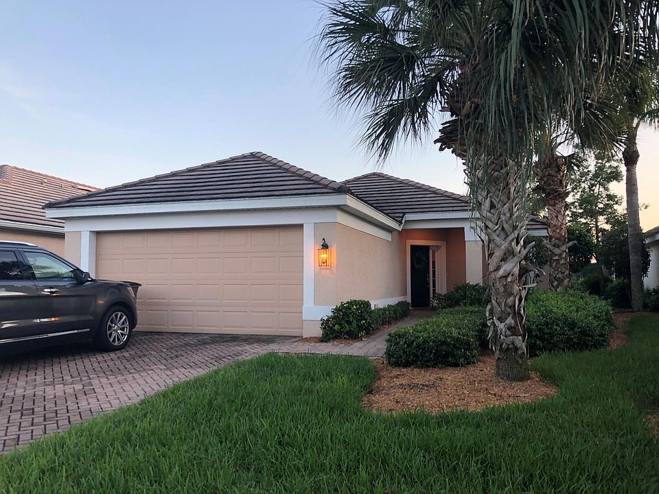 1 year or more lease! Stunning ranch on a premiere parcel backing to a pond with no obstruction of views! Featuring an open floor plan with ceramic tile and wood laminate in the bedrooms, an elegant dining room with access to a bright kitchen featuring white cabinetry, newer appliances, and an island all open to breakfast eating area and vaulted family room with views of pond and access to the screened lanai. The home also features 3 bedrooms and 2 full bathrooms consisting of a master suite with views of the pond, double vanity, separate shower, and walk-in closet. The shared hall bathroom features single vanity and shower/tub combination. 2-car attached garage! Sandoval is a gated community where tenants will have full access to all the amenities available including a beautiful park for children, a common area swimming pool, tennis courts, basketball courts, and health club. Included in the rent is lawn care and access to community amenities. *Photos do not show updated flooring* $200 non-refundable pet deposit. Sandoval is a gated community where tenants will have full access to all the amenities available including a beautiful park for children, a common area swimming pool, tennis courts, basketball courts, and a health club. Included in the rent is lawn care and access to community amenities. $200 non-refundable pet deposit