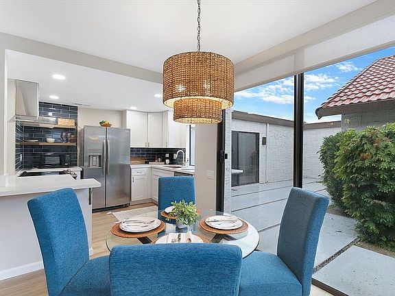 This completely reimagined 2 bedroom, 2 bath condo is move in ready! Every inch of this Canyon Sands condo has been completely remodeled in a style that combines comfort and convenience with updated functionality. Your new kitchen features quartz countertops, new stainless appliances, new cabinets, and beautiful tile backsplashes. Remodeled bathrooms feature designer wallpaper, new LED lighting, brushed satin fixtures, modern glass shower panels, and natural wood vanities with integrated marble sinks. A new HVAC has been installed as well as a new water heater. New roller shades provide the privacy you desire when it’s time to wind down for the day. Canyon Sands HOA amenities include pools, spas, tennis, pickleball and is pet friendly. Low HOA dues cover earthquake insurance, water, sewer, cable and trash as well as exterior building maintenance. Just minutes from Palm Springs Airport make in/out seasonal travel a breeze. World-class restaurants, casinos, shopping and downtown entertainment are just minutes away. Will cooperate with licensed real estate professionals. Furnishings available.