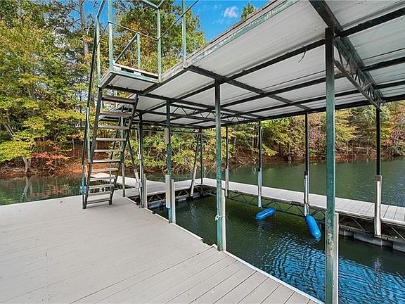 One of a kind TWO HOME retreat on Lake Lanier. 1.24 PRIVATE acres with gentle slope & easy walk to the dock with party deck. Protected cove with NO HOA. Entire point by home is Corps property! Property INCLUDES main home & guest home each w/a 3 car garage, 2 bay high bay detached garage w/workshop, heated salt water pool & hot tub! MAIN HOME is spectacular! Main level is open w/recently refinished hardwoods throughout! Floor plan is IDEAL! Master on main w/fireplace & deck overlooking pool & lake. Also on main, office w/wet bar, den w/stone fireplace, dining room, large eat in area & "heart of the home" kitchen, & sitting room which also opens to the deck overlooking the pool. Laundry & two half baths complete the main level. Upstairs are 3 generous bedrooms w/jack & jill bath and en suite bath both recently updated! Terrace level includes finished den, full bath, & 3 car garage w/epoxy finish. GUEST HOME has 2 bedrooms, full bath, full kitchen & den as well as laundry. This space is perfect for family members, separate office space, home schooling or rental income! The guest house also includes 3 car garage. Pebble tech pool & hot tub have just been resurfaced and are gorgeous. You'll LOVE the pool area w/bar and kitchen area on the expansive stone pool deck. Additional 2 bay, "high bay" garage with workshop perfect for your RV, camper, boat, lake toys, golf cart, storage, etc. Both homes just painted inside and out, detached garage painted, new fixtures added, bathrooms updated, along with many other items done to make this beautiful home turnkey! The dock w/party deck is an easy walk just steps away. Back yard is level w/loads of space for play or large scale entertaining. Sq footage reflects above grade finished space for both homes.