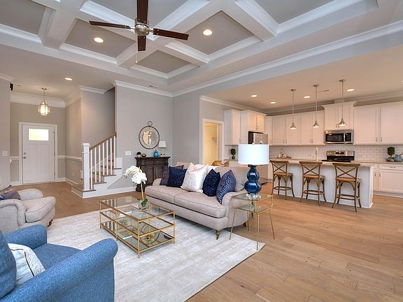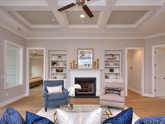 Single level living at its finest! This open floor plan is perfect for just the family or entertaining. The kitchen opens to both the dining area and great room. The oversized porch is the perfect extension for gathering space. 6.5 wide French Oak hardwood floors are throughout the common areas and Master Bedroom. The Great room features a coffered ceiling, gas fireplace & built ins. Granite Countertops throughout. Step into the Owners Suite & find a trey ceiling, large walk in closet w/ custom wood shelving. Zero entry tile shower with rain head & handheld shower head. Bonus room w/ full bath over the garage is the perfect Flex room... What will you use it for?