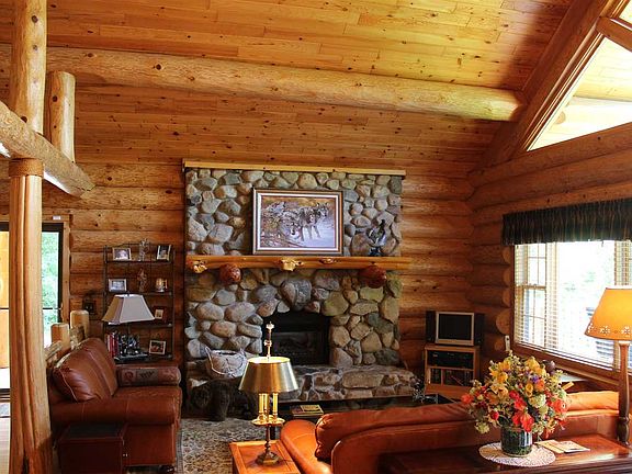 This home is a stunner!! From being featured in the New York Times magazine to gracing the covers of log home guides, this custom built 3 bedroom walk-out has everything you could want. Located just a few miles from town on Little Jay Gould with direct access onto Pokegama, Jay Gould and the Mississippi River. Every inch of this home is immaculate. Vaulted ceilings, panoramic views, wrap around log decking, large level yard down to the lake all landscaped with an irrigation system. 2 stall detached garage with a temperature controlled storage room also includes a year 'round studio with french doors to the lake. Open concept kitchen, dining, living space on main level. Bonus area in loft plus second living space, reading area, bedroom and full bath in lower level provides ample room for every activity! Two Expansive stone fireplaces. The list could go on and on. This property truly needs to be seen to be appreciated.