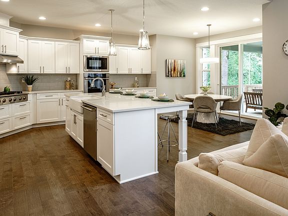 The Shasta and the Shasta XL are appealing home designs, and with the Shasta XXL, you get even more additional upstairs living space. The Shasta XXL offers homeowners plenty of great options with three to five bedrooms, 3.5 to 4 bathrooms, a three-car garage, and 3756 square feet of living space. There are also multiple elevations, all of which complement the aesthetics of the Pacific Northwest. This is an excellent choice for those who want even more flexibility, options and space.The first floor of the Shasta XXL is just like the Shasta, which is already a fantastic home design in its own right. From the well-lit entry with transom and side windows surrounding the front door, an elegant coffered ceiling hallway leads you into the home. Along the hallway, you'll find an arched entrance to the dining room on one side and the standard den on the other side. For those preferring additional bedrooms, it is possible to convert the den into a bedroom.As you continue down the hallway, you'll find another arched entrance that leads into a smaller hallway that includes access to the powder room on one end, and access to the master bedroom suite on the other. Arched entrances lead to both spaces adding to the beauty of the home's interior. There is also the option to turn the powder room into a full bathroom when the den is used as an additional bedroom.