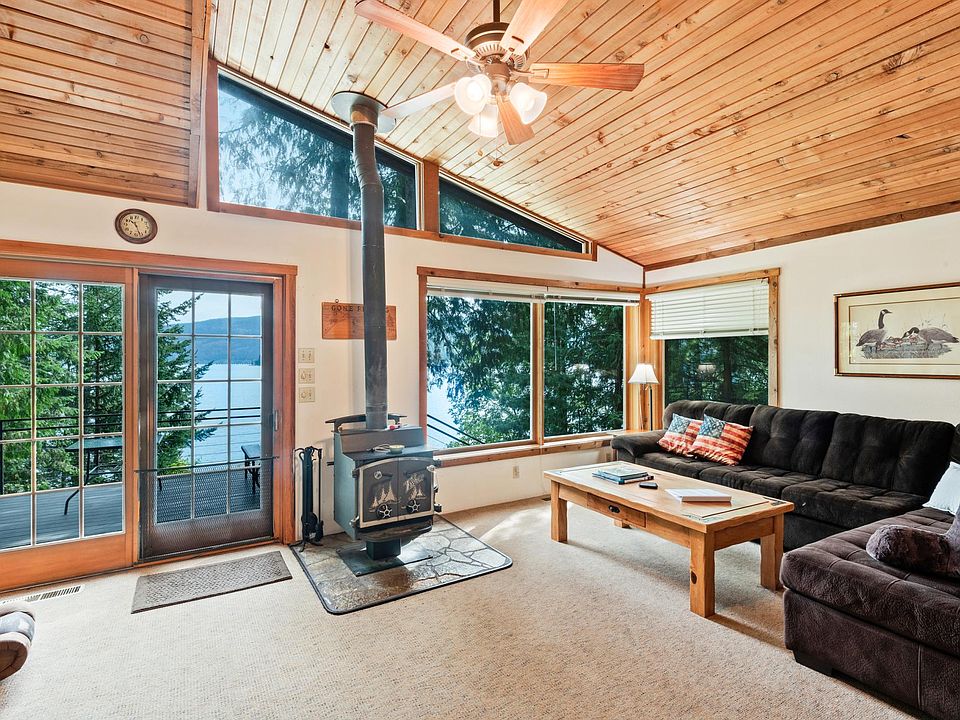 Check out this pet friendly 2bed/2bath waterfront home with separate studio apartment! Located just 2.5 miles down Lakeshore Drive means you're just 5 miles to downtown Sandpoint. This property is fully furnished, from linens/towels, down to pots/pans/silverware/etc. Available October 4, 2024 until March 31, 2025, this place is ideal for someone moving to the area and needing a place to land while they look around to buy or build. In the main house, the primary bedroom has a King bed and full bathroom en suite. The 2nd bedroom is a loft with (2) Double beds and (1) Queen bed. Primary heat is electric forced air furnace, with a wood stove available to tenants - no firewood is provided. High-speed cable internet is already in place. Tenants have access to the huge 2-car detached garage, and the studio apartment above it. The apartment has a King bed and a Twin bed, along with full kitchen and dining area, full bathroom, and wood stove. Available October 4, 2024 through March 31, 2025. Tenant to pay $115 additional per month to cover water and sewer services, and another $70 per month additional to cover existing internet service. Tenant to transfer electric service into their name and be responsible for paying the service provider directly. Tenant is responsible for snow removal. No lawn maintenance necessary. There is no subletting allowed for any part of the property. Dogs are considered, with approval, and an additional $300 non-refundable pet fee.
