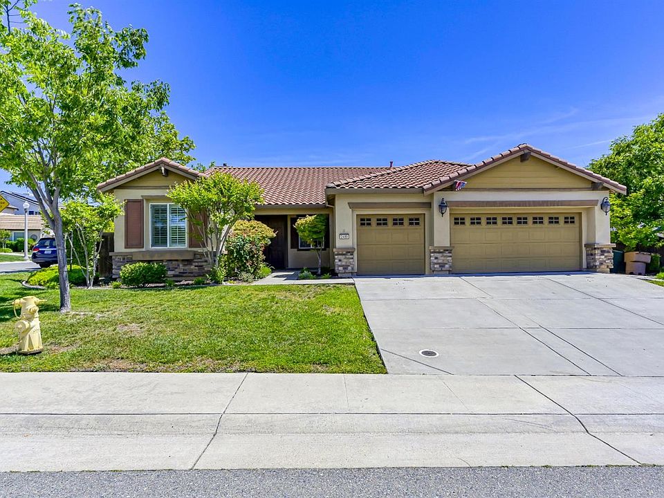Outstanding single story 4-5 bedroom, 3 bathroom Pulte built home in picturesque 12 Bridges! Featuring a light and bright flowing floor plan, plantation shutters throughout, family room with fireplace, kitchen with granite countertops, island with built in sink, large pantry closed, stainless steel appliances and dining bar. With an extra large master bedroom, a den/office, two large bedrooms a remote bedroom and bathroom this home is ideal for multigenerational living. Situated on a corner lot with plenty of backyard entertaining space w/ shady covered patio and ceiling fan, plus still room for raised planter beds and fruit trees. Located near shopping and dining and walking distance to schools, parks and trails this is the perfect location to call home.