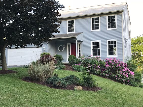 This 24-year young home has been beautifully renovated! New windows, doors, floors, baths, kitchen and more. New hardwood flooring has been added to the entire first floor. Take the round-about to the living room, dining room, powder room and a Brand-new kitchen with lots of cabinetry and pantry space, an island counter cook area that includes a breakfast nook. The remainder of this 12'x 36' room is a family/entertainment area, with French doors leading to one of two decks and "The View". The 2nd deck surrounds a 24' pool in a large fenced backyard. The back door leads into a finished 900 Sq. ft. game room with powder room & wet bar. Now to the 2nd floor- Vaulted Master suite, with skylight, 7'x10' walk-in closet and spacious private bath. The vaulted family bath has a skylight & linen closet. 3 more nicely sized bedrooms with plenty of closet space, Plush wall-to-wall carpeting through out and pull-down stairs to the large fully decked attic storage.