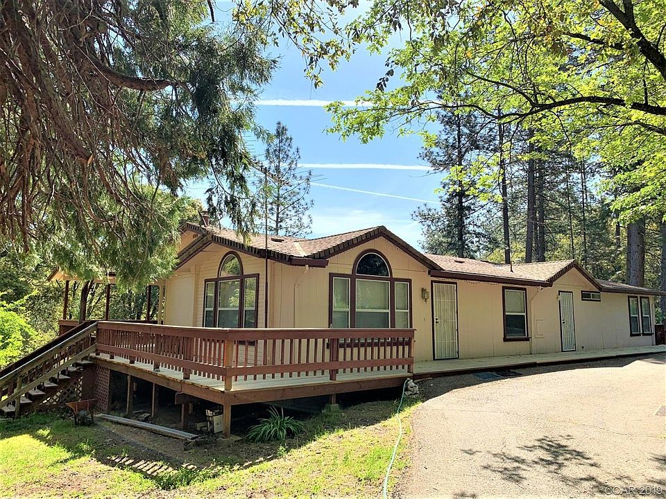 Beautiful Woodhouse Mine Rd location. Woodhouse Mine Rd runs along the top edge of the south fork canyon and is the banana belt of the West Point area. The house is a 3 section manufactured home providing a very large master bedroom with a sitting area and walk-in closet big enough for two. Great wrap around deck leads to a covered back patio, perfect for enjoying a morning or evening beverage. The property also includes numerous outbuildings, a large garage/shop with wood burning stove, an additional garage with separated room that could be potential office or guest room also with wood burning stove. Comfortable landscaping with lawn, meadows, flowers, herbs, fruit trees, mature oaks, fenced garden areas, potential dog runs and circular driveway for easy access to the home and outbuildings. With this setting there is a wonderful, comfortable feeling of privacy and home. Don't miss this one.