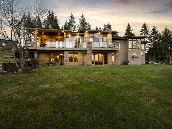 Discover the ultimate in luxury living with this exceptional offering: a stunning gated Bald Peak estate on 8.53 total acres, combining a meticulously designed Mascord home on 4.68 park-like acres with an adjacent 3.85-acre parcel of raw land. This unique opportunity allows for the creation of a true luxury estate, with the potential for a secondary residence on the additional tax lot. The elegant main residence is a masterpiece of modern design, originally built as the builder's own home. Every detail showcases high-end finishes, including slab granite surfaces in the kitchen, laundry, and bathrooms, 10-foot ceilings, rich hardwood floors, and custom cabinetry. The gourmet kitchen is perfectly suited for entertaining, while the media room, complete with an 80" flat screen and premium sound system, offers a luxurious retreat. A spacious 537-square-foot workshop on the lower level and a high-efficiency multi-fuel furnace add functionality and comfort to the home. The fully deer-fenced grounds feature a large, detached 24'x36'shop, perennial flower and vegetable gardens, a variety of berries, and a flourishing fruit orchard. The adjacent 3.85-acre parcel expands the possibilities, offering ample space for a secondary residence, additional amenities, or simply enhanced privacy. Together, the combined 8.53-acre estate provides an unparalleled blend of seclusion and convenience, with easy access to the high-tech corridor. This is a rare opportunity to create your dream luxury estate, complete with breathtaking Mt. Hood views, tranquil surroundings, and modern elegance. No expense has been spared in crafting this exceptional property.