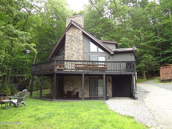 SPECTACULAR TURN KEY LAKE WALLENPAUPACK 2ND TIER CHALET! LOCATED IN BEAUTIFUL LAUREL LANE! A stone's throw from the lake and community boat slips! This 4 Bedroom, 3 Full Bath homes offers seasonal lake views, Open Floor Plan, Large Living Room with a floor to ceiling stone faced fireplace, modern Kitchen with Quartz Countertops. 2 Bedrooms on the Main Level, 1 Bedroom on Upper Level and the Lower Level offers a Bedroom, Large Family Room with Walk-Out, Sauna & Laundry Room. All new flooring, new metal roof, new siding and tons of upgrades. Tons of room for family and friends! Enjoy BBQ's on the large deck or cocktails by the firepit. Comes with an additional lot for extra parking or expansion. Come take a look and Start Living the Lake Life Today!, Beds Description: 1 BED 2nd, Beds Description: 2+Bed1st, Beds Description: 1BedLL, Beds Description: 1 BED 2nd, Baths: 1 Bath Level 1, Baths: 1 Bath Level 2, Baths: 1 Bath Level L, Eating Area: Modern KT