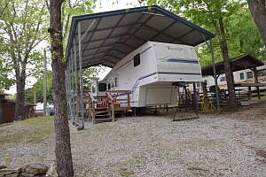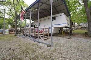Rare find! Lake view from this double lot with two campers! A 1998 Terry and a 1976 Coachman both in good condition. Purchase them together or separately! Buyer to verify energy source to appliances, heating/cooling & water heater.