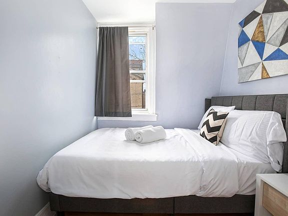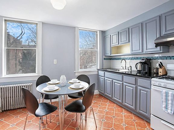 No broker fee, for rent by owner. Three bedroom apartment in excellent location, 5 minutes walk to Grove PATH. Renovated, sunny duplex apartment in historic Harsimus Cove area. Three bedrooms - Two good size bedrooms with built-in closets, plus one smaller bedroom (bedroom is small, but has a window and is usable as a bedroom - this is not a windowless den). Mable Bathroom and granite countertop in kitchen. Excellent location - Second Street between Manila and Erie - very close to Grove Street PATH station.