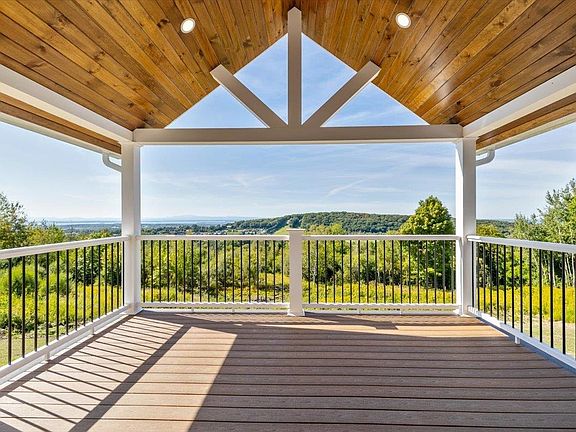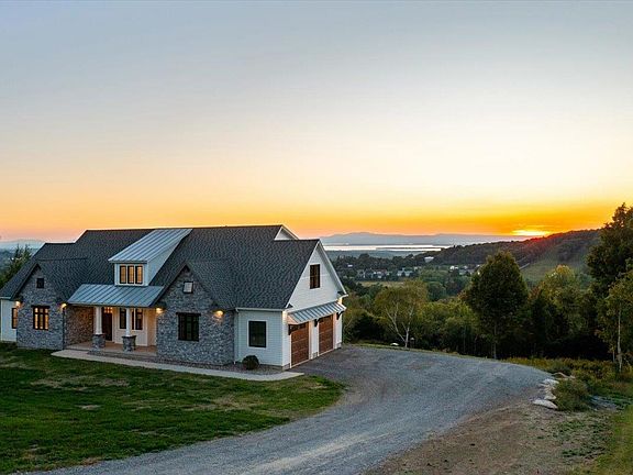 Perched above St. Albans with commanding views of Lake Champlain and the Adirondack Mountains, this exceptional 4-bedroom, 3-bath craftsman-style home offers luxury living at its finest. Every element of this residence has been thoughtfully designed, showcasing remarkable craftsmanship and timeless architectural detail. Inside, cathedral ceilings, custom beams, and decorative ceiling designs create a sense of elegance and scale, while expansive windows fill each room with natural light. The stone fireplace serves as a stunning centerpiece, blending warmth and sophistication. Throughout the home, no detail has been overlooked—each space reflects an unparalleled level of care and design. The custom kitchen is a true highlight, featuring high-end appliances, bespoke cabinetry, and premium finishes that make both cooking and entertaining a pleasure. The open-concept layout ensures seamless flow while maintaining a sense of refined distinction. Step outside to the expansive back porch, where unforgettable sunsets paint the sky over the lake and mountains. This outdoor retreat is ideal for gatherings or quiet evenings alike, providing a perfect extension of the living space. Combining craftsmanship, elegance, and breathtaking views, this home is a rare opportunity to experience luxury living in one of Vermont’s most desirable settings.