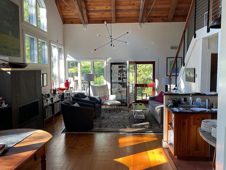 Simply stated, this property is a hidden paradise, a gem the likes of which dont come to market often. Its a mini-compound conceived and executed by visionary owners who took time to understand the land and the sun and the seasons. The result is a lush multi-building enclave thats outfitted for full-time living or just as easily enjoyed as an escape from the city. Located on a quiet country road and down a long driveway, this private sanctuary offers delights in all seasons. The 3 bedroom/2 bathroom house is a classic contemporary with soaring ceilings, an open floor plan with a delightful custom kitchen, and wide-board floors through the dining and living areas. A bluestone-faced fireplace anchors the space and walls of windows and skylights allow views of the outdoors and plenty of sunshine to pour in. The primary bedroom suite is on the first level and includes a spa-chic bathroom and direct access to one of the many decks. Two comfortable bedrooms on the second floor share a full bathroom. Systems in the house have been recently upgraded and the home, as well as the rest of the property, have been impeccably maintained. Its a short walk down a romantic garden path to the 600+ sq ft studio, which can serve as a home office or overflow guest space, has its own full bath, and sits atop the oversized two-car garage. For less serious work, theres a dreamy writers cottage with a live roof perched on the edge of the enchanting pond thats stocked with huge koi and a school of rocket fish. Apart from the mature and varied perennial landscaping, the most exciting aspect of the outdoors here is the pool complex, including a pergola thats crawling with wisteria, plenty of patio area to sun or find some shade, and a stone-pillared screened porch, covered deck, outside shower, and sprawling open deck with an outdoor sink, refrigerator and grill area. This pristine property has the great benefit of being located close to Inness, Westwind Orchard, Arrowood Brewery, outdoor activities at the Mohonk Preserve and Minnewaska State Park and many local restaurants and farm stands from New Paltz to Kingston, Woodstock and beyond.