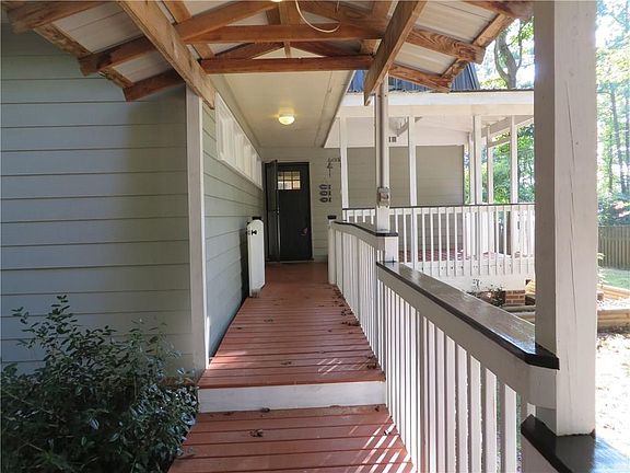 Enjoy tranquil lake living! 4 BR/3 BA home on Lake Buckhorn. 2 BR/1 BA on main- 2 BR/2 BA up. On the larger portion of the lake next to the HOA common area. Enjoy your dining in the large great room/dining area with lake views. Detached 2 car garage with lots of storage. Updated kitchen. Updated baths. Some new windows. Front and back decks. Huge master closet. Lake living close to I-20.