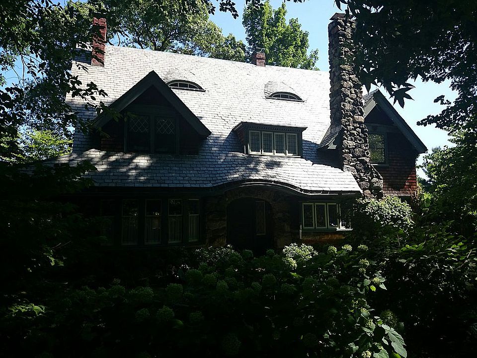 Set on beautiful Fisher Hill, this Shingle and Stone-style residence designed by Horace Frazer of Chapman and Frazer was renovated in 2000 and was featured in "This Old House" magazine. Fine architectural details include multiple fireplaces, leaded glass windows, and many built-in features. Gracious front-to-back living room with gorgeous leaded glass windows, fireplace, built-ins; French doors to sun room; elegant dining room with wainscoting, fireplace, leaded glass, window seat. Kitchen with custom cabinetry and lighting, granite, stainless steel, island and eating area. Master bedroom suite with fireplace, sitting room, master bathroom with Carrera marble, four additional bedrooms, two more marble bathrooms, finished basement with built-in theater/stage, slate roof, two-car garage with a deck above. Beautiful patio and Japanese garden on a professionally landscaped lot. Great curb appeal. Close to the T and Runkle School.