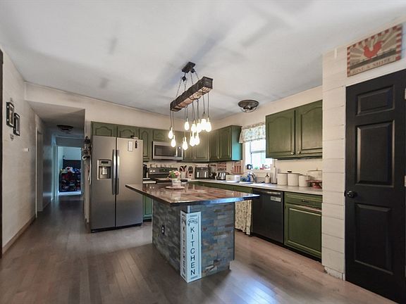 Oversized Raised Ranch on 1.5 acres. Open Concept Kitchen, Dining Room and Living Room makes for great entertaining space. Kitchen leads to an over-sized 2 level deck and above ground pool. Primary bedroom with large space for full bath and multiple closets. Bedroom #2 and #3 are generously sized with double closets. The finished heated basement offers options for use as a bonus room, second living room, game room, complete with built in bar. A 4th bedroom exists in the lower level which could be used as a home office as well. Potential for an in-law set up. Rough plumbed for a 3rd bathroom. Walk out double french doors leads to patio and fire pit area just in time for the summer months to enjoy a private back yard. Enjoy rural living with easy highway access!