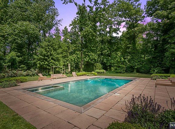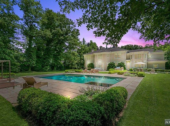 WATCH VIRTUAL TOUR!!! Situated across from across from the 8-acre Churchill Nature Preserve this beautiful Georgian colonial Designed by James Paragano is located on Tenafly's prestigious East Hill. The first floor entrance foyer with impeccable in-lay wood flooring leads into a beautiful formal living room with a fireplace. The kitchens breakfast nook, living room and den have access to the backyard with a gunite swimming pool and hot tub with outdoor patio and bbq welcoming guests for entertainment. In addition to the Master Bedroom Suite upstairs are three ensuite bedrooms and large bonus room which could double as a fifth bedroom.