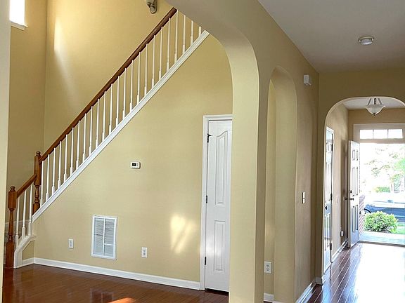Hardwood floors throughout first floor. Formal dining, fully-equipped kitchen w/ granite, tile backsplash, stainless/black appliances, lots of cabinets & breakfast area. Large 2-story family room w/ gas fireplace. Open staircase to 2nd floor w/ huge master suite w/ separate garden tub, shower. Double vanity & walk-in closet. 2 nicely sized bedrooms and washer/dryer as well. Amazing community w/ pool included!