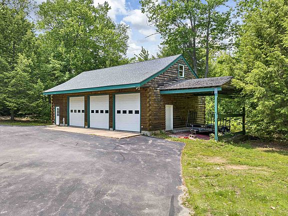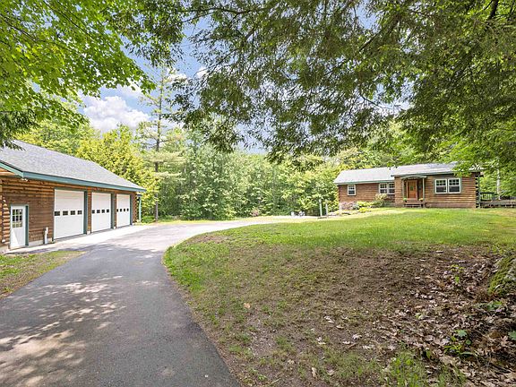 This one level home is tucked in conveniently off of Coffin Brook Road. It sits on over 25 acres in the desirable town of Alton and has a detached 3 car oversize garage with walk up storage. This 1986 log home is move-in ready with a stylish rustic design. Open concept kitchen and living area with cathedral ceiling and exposed beams provides a warm atmosphere to gather and share good times with family and friends. From kitchen area you have a direct access to the large outdoor deck. Along with your primary source of heat there is also a wood stove, pellet stove and gas stove. Plenty of light shining thru the skylights and abundance of windows with natural woodwork throughout. 1st floor has 3 bedrooms with an updated full bathroom. So if first floor living is what you are looking for then look no further. Finished Basement offers bonus room with gas fireplace, office/study room and laundry room with 1/2 Bath. Schedule an appointment or stop by at our open house on Sat- Jun 17 from 11am -2pm.
