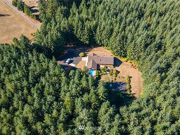 Amazing private shy 10 acre parcel surrounds this beautiful custom one level home. Craftsmanship thru out! Home built with log and river rock accents. 3 bedrooms, 2.75 baths, spacious living room with rock fireplace. Kitchen with custom cabinets, quartz-sile stone counters, formal pantry. Mud room w/laundry, murphy bed. Handi cap accessible, skylights, heat pump, A/C, eucalyptus rose wood, mahogany & more!! Expansive trex deck partially covered. patio/firepit, 13x24 solar heated pool & pool house. Attach. 2 car garage, sm. green house, garden & orchard. 36x44 shop with 220, 3 bays, RV parking & attached carport, paved driveway. Minutes to I-5 access. Located between Seattle & Portland.