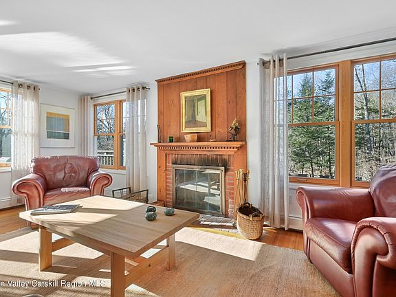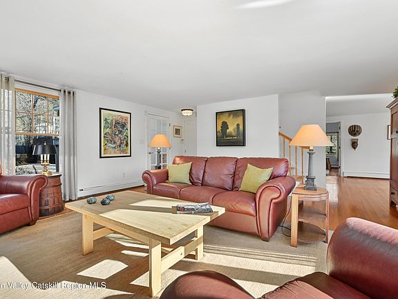Upon entering home, you will be captivated by the sun filled rooms and practical floor plan. An inviting living room features Pella Architectural Series windows that frame the Tonche Mountain views. Light the wood-burning fireplace for a cozy snuggle on a winter night. Gourmet kitchen equipped with modern appliances, ample storage, all with a level of cleanliness not often found. The additional dining area offers space for entertaining guests and enjoying meals with direct access to the multi level deck for alfresco dining. Large electric retractable awning for easy comfort in any weather. This home has seen many dinner parties hosting local artists and Woodstock legends alike.