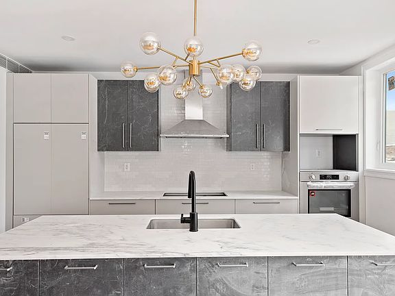 Enter into the main level duplex through the massive living space perfect for entertaining with large enough space for living room, dining and direct access to the kitchen that leads to the private, outdoor terrace. The kitchen is a stunning example of modern perfection. Marble countertops create a waterfall effect over the center island. Custom cabinetry ties the sleek design together. Dishwasher, stainless steel appliances and wine fridge complete this space. Main level features a powder room for added convenience.