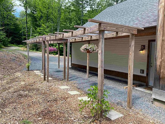 Discover this exquisite custom timber frame home nestled on 7.42 acres, boasting luxury and craftsmanship at its finest! Built in 2020, this architectural gem offers 3,240 sq ft of living space, featuring 3 large bedrooms, 3 baths w/ an in-law apt option. The home's open floor plan invites creativity to unfold; it showcases polished concrete floors w/ radiant heat on the ground level and glowing hardwood floors upstairs, a striking 38' concrete countertop integrates the kitchen and studio area, and a soaring 28' cathedral ceiling in the great room astounds. Indulge in custom tiled showers and the soaking tub under majestic curved braces and beams. Revel in the abundant natural light pouring in through oversized Marvin windows, the deep Kohler kitchen sink, and the warmth of a Hearthstone wood stove in the living area. Admire the elegance of solid oak shelving and a striking central staircase. Unwind on the expansive 30' x14' back deck overlooking meticulously landscaped gardens teeming w/ Peonies, Iris, Daylilies, & berries. The property features a heated 2-car garage w/ unfinished attic space, ideal for storage or potential expansion. Meander along the driveway lined w/ Rhododendrons & Crabapples, leading to charming arbors, serene walking path, quaint garden shed, cozy stone fire pit and a hammock. Experience convenient proximity to South Pond along with nearby recreational activities, attractions, Marlboro Music Festival and Wilmington/Brattleboro.
