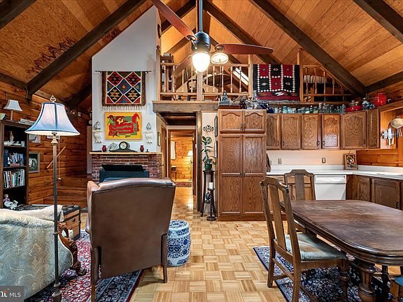 Dreaming of a log cabin in the woods to retreat to yourself and/or rent out? Stop scrolling. Enter the main level from an oversized front deck with retractable awning. This level features parquet floors, a wood burning fireplace, open floor plan, loads of natural light from skylights, 2 bedrooms and a full bath, with clawfoot tub. Walk up to the loft for extra space and charm. The addition of a wall AC unit helps the heat pump on those extra warm days. Head to the walkout basement for the den, a second full bath and a bonus room great as a third bedroom (NTC). Outside enjoy exploring the 3.5 acres, gardening, or working in the detached studio with additional workshop space. Located at the end of the cul-de-sac, you can enjoy your privacy, but you won't lack for things to do. This log home is just 2.5 miles from historic Berkeley Springs where you can enjoy boutique shops, art, antiques, and local eateries or spend time at George Washington's Bathtub in Berkeley Springs State Park in the heart of town. Coolfont Resort is a 10 minute drive-day passes and memberships are available for purchase. Cacapon State Park and the C&O Canal are each about 30 minutes down the road. Bonus: no HOA & hard surface roads until the last 0.2 mile.