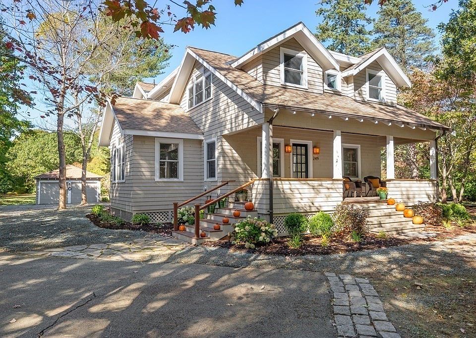 This CHARMING Bungalow built in 1915 has been expanded and renovated to create a fabulous sun filled home with vaulted ceilings, walls of windows, exposed beams and over 2700 SF of living space. The property, reminiscent of a Farm in Vermont, offers 3 acres of expansive organic land with a sweeping rear lawn, specimen trees and ornamental shrubs abutting conservation land. Inside, the house consists of two family rooms on the first floor offering plenty of room to spread out and relax, a Dining room and 2 additional rooms that could be used as bedrooms or "work from home" offices. Upstairs there are 3 bedrooms including a master suite with vaulted ceilings, walk in closet and brand new bath. Many improvements over the last several years including a new heating system, hot water, oil tank, roof, porch and all new appliances. Enjoy this bucolic setting with beautiful sunrises and sunsets and the convenience of being close to the Derby Street shops and restaurants.