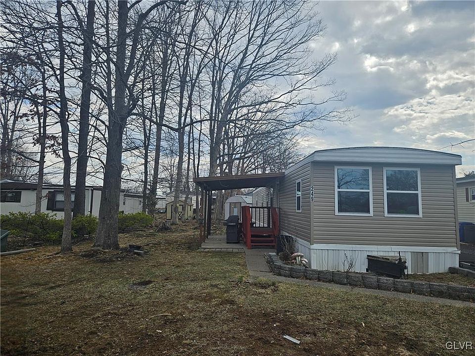 Beautifully updated 2-bedroom, 1-bathroom modular home on a tree-lined land lease lot. This home has been fully remodeled in 2024, featuring a brand-new kitchen and bathroom, new flooring throughout, upgraded plumbing and electrical systems, new windows, new drywall, and it will be freshly painted before closing. It has convenient central air and heater, making this home truly move-in ready.