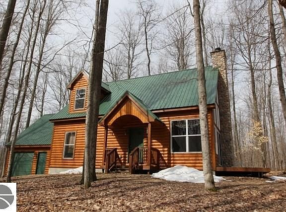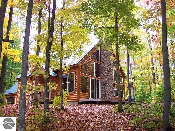 Make this your north retreat or year round home! Beautifully constructed 3 BR, 2 bath log sided home with 2x6 construction situated on 5 wooded acres. Hickory cabinets, island & pantry. Floor to ceiling windows, thunderbird & fieldstone top of the line gas fireplace. Upper level master suite with walk in closet and loft area. Tongue & groove throughout, cathedral ceilings and log staircase. 1 car attached garage. Close to ATV/snowmobile trails that one can drive to right from the home without the need for trailering. 10 miles to beautiful and historic Fife Lake, 35 miles to Boyne Mtn for skiing , 2.5miles from Manistee River for trout fishing and kayak/canoeing. Home with close access to year around fun family activities. 3 hours from Detroit. 2hours from Grand Rapids