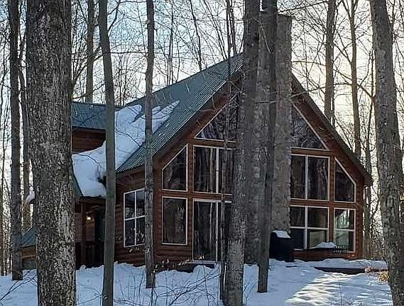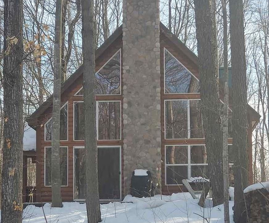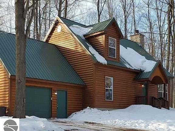 Beautiful, log cabin style chalet on 5 secluded wooded acres. This 3 bedroom, 2 bath home has an attached 1 car garage. The fireplace and loft will catch your eye. Feel likes Pure Michigan! Just a short drive from Traverse City, Kalkaska, Lake City and Cadillac. Home is close rivers, lakes, trails and State Land.