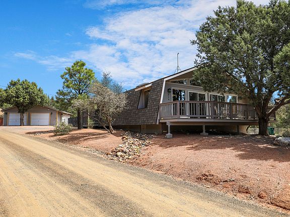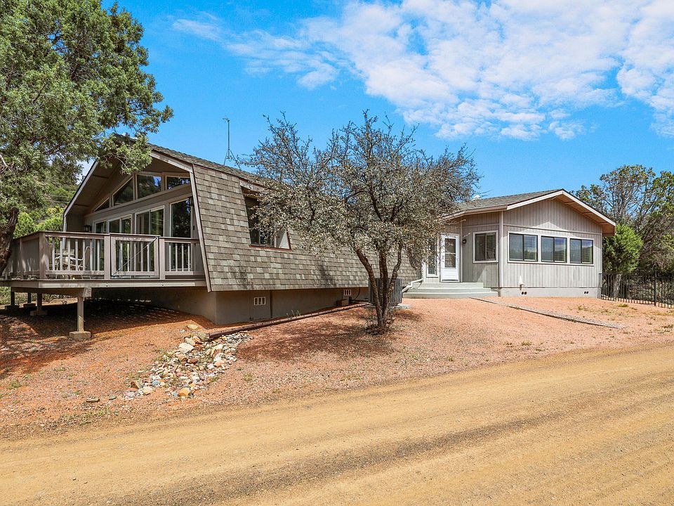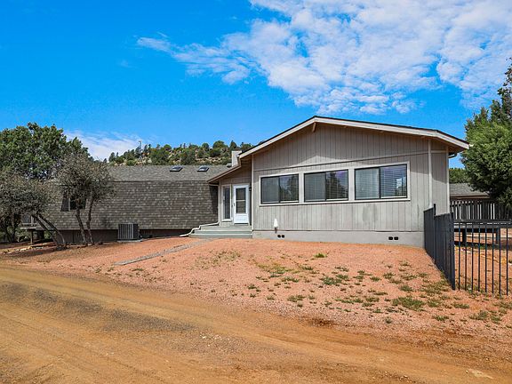 This fantastic wide open floor plan home sits in a tucked away subdivision north of Payson with the East Verde River carving it's way through its center. The property is flanked by two roads to the north and south with nice spacing from neighboring homes. The expansive open great room gives you so many options to position furniture and complimenting decor. The sky lights keep the great room bright, and with the gorgeous fireplace, there is a nice cozy place to sit and gather on many cooler nights. There is one bedroom that is configured to easily and conveniently make it into a small office, as well. The two decks orientation allows you to pick a comfortable spot as the sun is shining on one, while the other is shaded. The back yard is enclosed with a very robust wrought iron fence that can also work as a dog run. The Seller had the house and garage exteriors painted in May 2024, and this along with a new roof as of February 2024 will give you a very sharp looking property when you turn the key for the first time. The East Verde Park is so unique with the East Verde River running through a lush riparian belt that is forested with cottonwood, sycamore and pine trees. The river is seasonally stocked with trout and bluegills. Hiking, mountain biking, and 4 wheeling is easily accessible through a locked gate to a forest road to the south of the subdivision. The location of this property is comfortably higher than the riparian area, and Seller has documentation from Gila County and a licensed surveyor requiring no need for flood insurance. You need to come and see this home to appreciate the distinctive setting that makes it so special.
