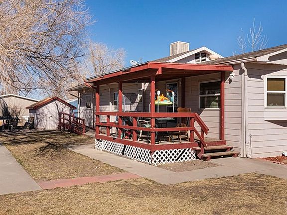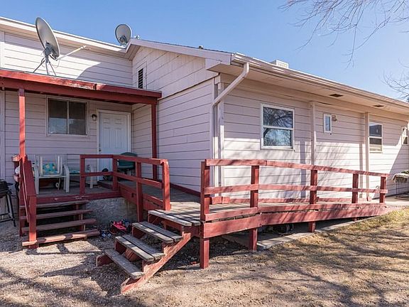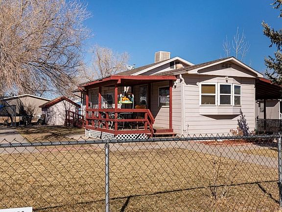 Great 4 bed 2 bath manufactured home with 1 car attached oversized carport. Kitchen features vaulted ceiling with skylight for added sunshine, gas stove, large newer refrigerator, ample oak finish cupboards (including corner lazy susan) and built-in wine rack over sink. Spacious living/dining room is open concept with vaulted ceilings here also. Master bedroom has vaulted ceiling also and large soaking tub. Laundry is located in the main bathroom. Newer evaporative cooler. Home has a covered front deck and covered rear handicapped entrance (with wooden ramp built) near northwest end of home to master. Home is purged and land is included. Addition to home completed with engineered specs and all permits pulled: 2003. Addition is independent load bearing of trailer. Roof is pier and beam so doesn't load bear on original structure. 42" crawlspace under addition with lay-down furnace. Newer evaporative roof cooler and water heater. Plenty of parking under carport, in drive and out in front of the home. Ramp for convenient access. Yard is fully fenced with 4' chainlink. Tuff shed included for your storage needs.
