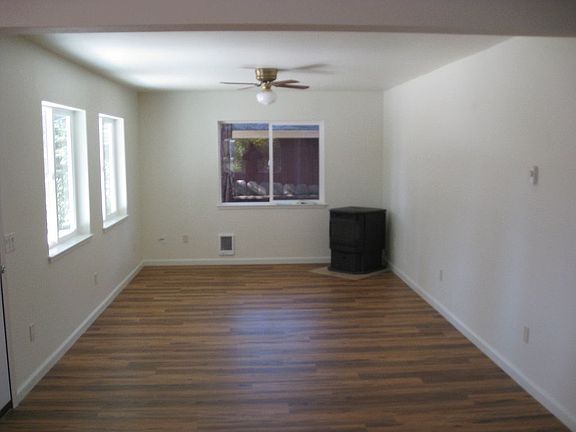 This home is very well built with 2X6 wall construction with R-19 insulation and R-30 in the attic. The home was recently remodeled. The remodel consists of a complete kitchen remodel with new tile countertop and new stainless steel sink and faucet. Kitchen and dining area have all new LED lighting, electric range, refrigerator and new dishwasher. Both bathrooms were refurbished with new lighting, fixtures, fans and vinyl floors. Laundry room includes washer and dryer. Walls have been re-textured and painted. All new interior 6 panel doors and hardware installed throughout. All door casings, trim and baseboards have been replaced. All new LVP (Luxury Vinyl Plank) flooring throughout living room, dining room, laundry room and hallways and new carpet in bedrooms. All windows have been replaced with dual glazed vinyl windows that include a 20yr warranty. Windows have all new exterior trim and interior window sills. A new Meridian Pellet Stove has been installed in the living room and inspected by the city. This stove will heat the entire home efficiently. There is additional electric baseboard heat in every room. The asphalt composition roof is in very good condition with all new powder coated gutters and downspouts. House is completely repainted inside and out.