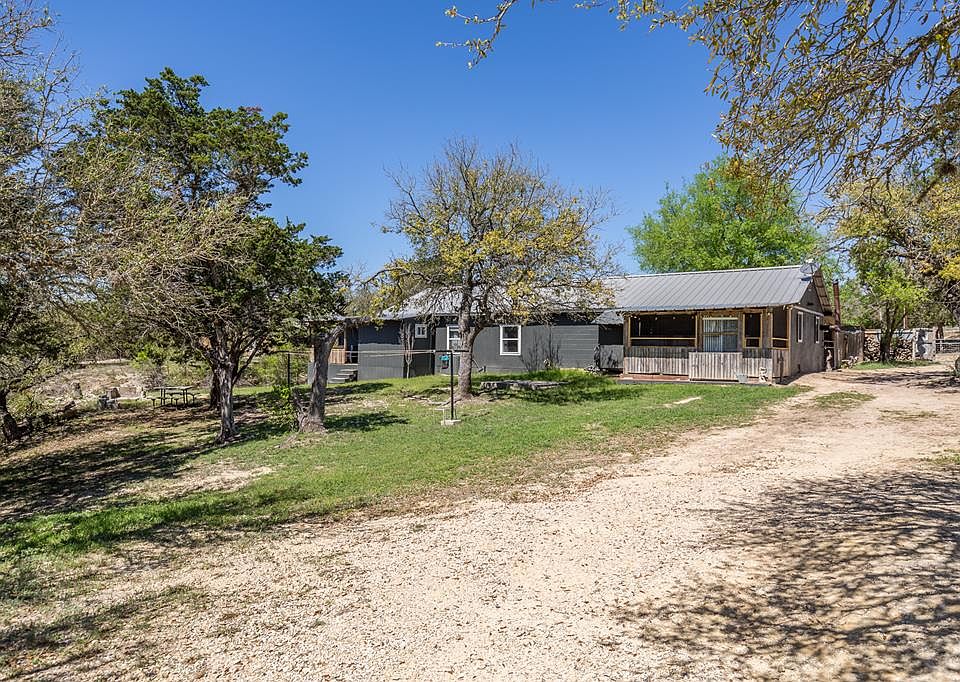 This beautiful home sits on 5.56 acres in the gorgeous hill country! The home is 1846 SF with 4 bedrooms, 2 bathrooms, and an office. This home features an open kitchen with a breakfast area, a spacious living area, large master bedroom, large master bathroom, and a large master closet that is currently being used as a craft room! Outside there is a large outdoor covered patio, a large outdoor entertainment area that would make a great outdoor bar/kitchen, two storage buildings, two covered carports, a larger boat/RV carport, and chicken coops. The property has nice oak trees, plenty of wildlife, and good topography! This property is being sold "As Is". The neighboring 5.47 acres can be purchased as well!