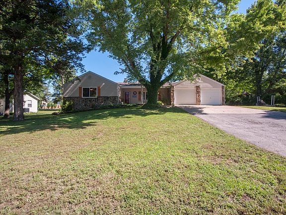 Lots and lots of new, high quality updates in this one level, 2165 sq ft family home. New cedar posts and shutters, new water softner, new stainless steel appliances, new kitchen island, new carpet, new garage door openers, updated master bath, lots of crown molding and freshly painted. Built in desk in the kitchen and new built in shelving with desk in the living area. Wood burning rock fireplace with four blower vents for heating, ceiling fans in almost every room, and an eat in kitchen as well as a bonus room/formal dining room. All the square footage all on one level, no stairs and steps on this flat, flat, flat lot with a large two car garage with a built in workshop. Convenient location close to schools, shopping, and just ''up the hill'' from down town Branson shopping/restaurants.