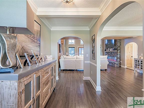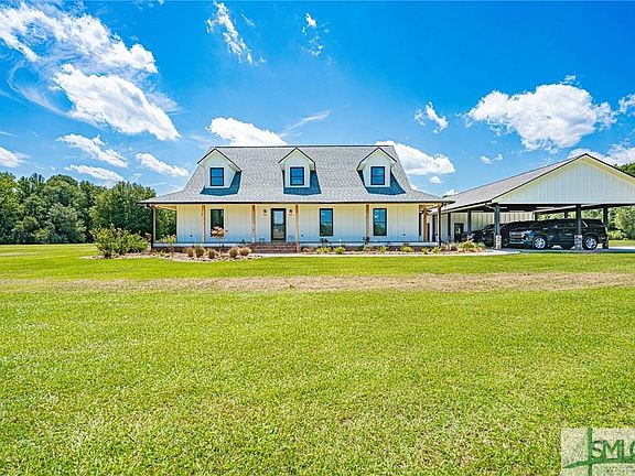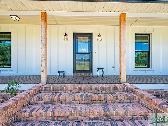 Elegant low-country home sits on 32 acres. While the great room features a stone fireplace and opens to the covered porch, the kitchen is the heart of the home. It includes a large center island, stainless appliances, & spacious dining area. A primary suite & guest suite on the main floor offer convenience. The primary suite boasts a luxurious bath with steam shower. Upstairs 2 bedrooms, bonus room, and guest bath. LVP & tile flooring grace every corner, complemented by decorative trim & cased windows throughout. A laundry room with powder bath & storage enhances practicality. Entertain under the enormous covered patio with a wood-burning fireplace & bar. The manicured property includes in-ground pool and 5 acre pond with dock. A fully equipped guest suite awaits featuring a full bath and kitchen. Hardi board siding, new roof, and asphalt driveways echo quality. Electric gates secure all driveways. With 2 workshops, endless possibilities emerge. Your dream lifestyle starts here!