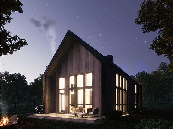 Set back off the rd, you'll find this contemporary under construction home, sited on 10 private wooded acres in an extraordinary setting. The home boasts 3 bd/2.5 bath, 1800+ sqft. Open floor-plan to accommodate & enhance all forms of daily living. Soaring 30ft cathedral ceilings allow for large gable-end windows that bring in natural light & provide spectacular views of the setting. The Kitchen features custom oak millwork paired w/ high-end appliances, quartz countertops & a generously sized island. Main level Principle Suite w/ generously sized bathroom, private terrace & outdoor shower. The 2nd floor has 2 bedrooms, full bath, den/office space & reading nook. Outside you'll enjoy another terrace, fire pit area & a lit path through the forest to the stream-adjacent yoga platform. Efficient, modern & refined for the most discerning. Minutes from Livingston Manor & Callicoon.