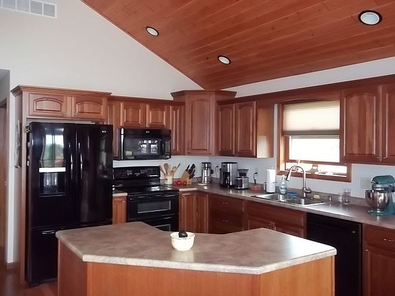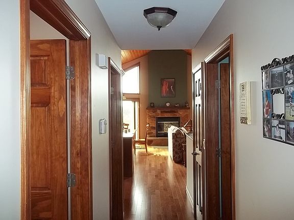 PREMIER QUALITY HOME in ELKADER, IOWA: Located @ 249 Golf Ridge Way in The Scenic North East Iowa Community of Elkader is this Top of the Line Stick Built Home. The Best Quality Materials and Features were Used Throughout, and You are the Beneficiary. This Lovely 4 Bedroom, (Plus Office) 2 & 1/2 Bath Home Is Located on a Quiet 1.05 Acre Country Style Location with a Breathtaking Panoramic Country View of the Adjoining Pond and Surrounding Majestic Area. The Windows are All Andersen. The Featured Great Room Incorporates the Cathedral Knotty Pine Ceiling of the Living Room, Kitchen and Dining Rooms. As You Pass through the Double Patio Doors with Transom Overhead Windows, and Go Into The Westerly View on the Pressure Treated and Stained 10' by 32' Deck; You Pass By the Stone Fronted Wood Burning Heatilator Fireplace with Gas Starter. The Great Room Floors are Hickory Wood Throughout. The Kitchen Features Solid Cherry Cabinetry, with Laminate Counter Tops, and a Central Service Island with Power. The Appliances are Top of the Line and the Electric Double Oven, 3 Door Frig/Freezer, Dishwasher (with Stainless Steel Interior), and Microwave are All Included. There are 2 Pantries in the Home. The Home is Of Course Constructed with 2" by 6" Sidewall Construction, with Super Insulated Ceiling 2" by 12" Great Room Ceiling with 4" Blue Foam, 4" Blown In Insulation, and 4" Air Space for Quality. The Balance of the Home is Super Insulated, with 16" More or Less of Blown In Insulation in the Attic. The Home has High Efficiency LP Gas Furnace and Central Air. The LP Tank is Owned and Buried to Eliminate the Unsightly View of the Exposed Tank. You have 2 Spacious Bedrooms and 1/2 Baths On the Main Floor, With Huge Walk In Closets, and an Unbelievable Master Bath with Garden Whirlpool Tub; double Heat Lamps; and Shower Unit as Well. All Interior Doors are 6 Panel Stained Pine that gives the Interior a Feeling of Soft Allure. The Laundry is on the Main Floor, and Again the Washer Dryer are Included. Downstairs Features another 2 Bedrooms, Office, and a Huge Family Room with 2 Patio Doors Leading Out onto the 12' by 32' Brick Pavers On Grade Patio. The Garage is 24' by 36' in Size. and Incorporates Into it a 10' by 15' Shop. The Garage is Insulated, is Heated by a Propane Furnace, and Has Hot and Cold Running Water. The Garage is Super Well Lit with Tons of Florescent Lighting. There is a Floor Drain in the Garage. The Exterior of the Home Features, 50 Year Warrantied LP Smart Cement Board Siding, Aluminum Gutters and Downs. It has Durable 30 Year Shingles, and a Stone Fronted Accent.