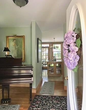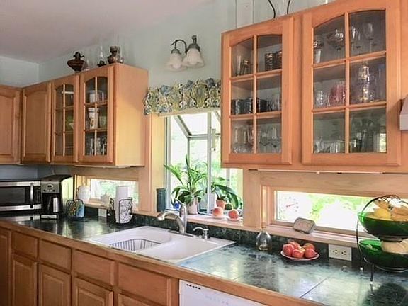 This lovely, move-in-ready West Tisbury, MA home is located in a serene & peaceful setting near conservation land and State forest. Square footage automatically adds house and cottage. Home is 2088 sq.ft. and cottage is approximately 80 sq.ft.This house features an elegant, custom Mansard roof. Walk into the front foyer which doubles as a music room with baby grand piano. Open kitchen & living area features marble counters and floors, with French doors opening to a south-facing deck. Soapstone woodstove is backed by original copper artwork. This great room is cozy and inviting. There is a large bedroom on the first-floor bedroom with bath. The second floor has the master bedroom with French doors that open onto a charming balcony. An open area for office or workout, full bath & the third bedroom complete the second floor. A charming cottage adds a whimsical touch to the beautiful backyard, which has extensive and mature gardens. A large storage shed in the side yard holds yard equipmen