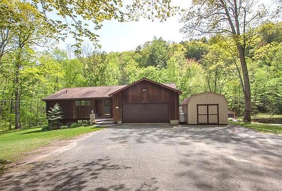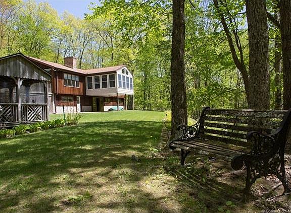 NATURE LOVER'S ALERT Beautiful custom built 9 room Ranch nestled next to a babbling brook, a mountain side of glorious, tall trees and trails ,and a private pond with a screened-in cabana All situated on nearly 15 splendid acres in lovely West Granby This house has been pampered both inside and out It features a large, light, sun-filled country kitchen with a center isle, abundant cabinets, pantry closet, and direct access to a private deck.A gorgeous heated four season porch is easily accessed from the living room.It has a lovely mahogany floor and windows on three sides that allow unobstructed views of the mountain, brook and private backyard. The first floor also features a formal living room with a gas fireplace, foyer, three bedrooms and two full baths. There is an additional laundry hook-up in the master bathroom as well as a Jacuzzi The lower level features a large walk-out family room with a Fireplace ,built-ins, and direct access to the brick patio.In addition, there is a 4th bedroom, utility room, laundry room, a full bath, and an office with separate entrance. Additional features include a shed,2 c heated garage, deck,central vac,full house generator, dual heating system,redwood siding,a pond fed irrigation system,water softening system,& MORE Complete list of extensive features is in the attachments. All appliances being sold in "as is" condition. Sale also includes 251 Hartland Rd(1.50 Acres & 251 R Hartland Rd (9.2 Acres.Note-Propane tank is leased