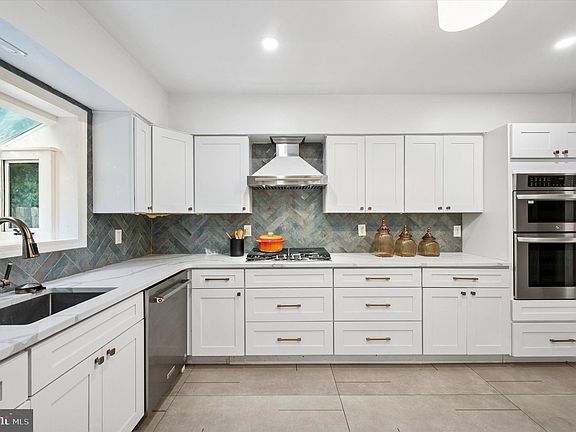 Experience refined one-floor living in this fully renovated rancher-style residence in one of Wynnewood’s most desirable neighborhoods, just across from Penn Wynne Elementary. Enter through the foyer to discover hardwood floors, recessed lighting, crown molding, and subtle touches of classic charm that hint at the home’s original character. The formal dining room offers an elegant setting for hosting dinner with friends and family. The meticulously designed kitchen includes white shaker cabinetry, quartz countertops, herringbone backsplash, stainless appliances, and a greenhouse window that fills the space with natural light. An adjacent laundry room, with included front loading washer & dryer, elevate everyday living. Convenient, powder room is perfect for guests. An expansive living area exudes warmth and grandeur with its marble gas fireplace, custom built-ins, contemporary lighting and full wet bar within an arched niche create an inviting hub for entertaining.. The sunroom, a bright and serene retreat, features a modern twist with stylish diagonal wall panels, blending contemporary design with comfort and elegance. The owner’s suite, with ample closet space, features a cozy en suite with soaking tub and designer vanity. For guests or in-laws, a spacious bedroom with double-door entry and its own fireplace creates a private, inviting retreat. Two additional secondary bedrooms are designed for comfort and functionality. Beautifully designed hall bath with walk-in shower, new vanity and new tiled flooring. Outdoors, a fenced backyard offers a private escape for gatherings, summertime grilling, playtime with children on the included play set, or relaxation, Convenient two-car garage and ample parking for guests. Set across from Penn Wynne Elementary and just moments from premier shopping, dining, and major routes, this home blends luxury, character, and convenience in one remarkable offering. Don’t miss the opportunity to make this exceptional home yours—schedule a showing today and submit your offer on this Wynnewood gem!