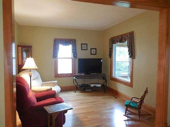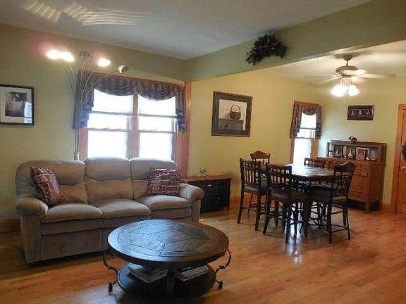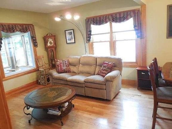 This charming, well cared for Burlington home is a must see! Beautiful hardwood floors in the spacious & open living & formal dining rooms. Gorgeous main flr. bath w/ double vanity & striking ceramic tile. First fl. laundry w/front loaders inc. Large applianced kitchen w/ breakfast bar & pretty ceramic tile floor, enclosed front porch. 3 nice sized bedrooms up, half bath & shower in basement. Newer windows, new furnace & AC, Stamped concrete patio & walkway, lovely landscaping & garden, newer 3 car garage!