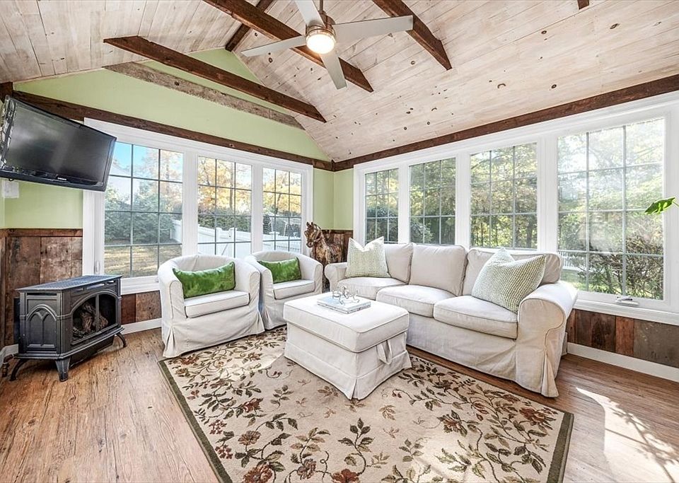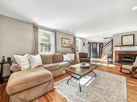 Beautifully maintained and thoughtfully updated, this 4-bedroom home offers comfort, versatility, and an ideal location near Plymouth River School and the commuter rail. Privately set back from the road on the sidewalk side of the street and abutting a 14-acre conservation area, it perfectly balances neighborhood convenience with a serene, natural setting. The first floor features a remodeled kitchen with sliders to a fenced backyard with patio, landscape lighting, fire pit, and a charming shed that doubles as a playhouse or storage. A dining room, wood-burning fire-placed living room, office, and rebuilt all-season room w/gas fireplace provide easy flow for everyday living. Upstairs are three bedrooms including the primary with WIC, 2 full baths plus a family room with gas fireplace and ample closet space. The lower level adds a finished office, laundry, workshop, and generous storage. Move-in ready and ideally located, this home defines easy Hingham living.